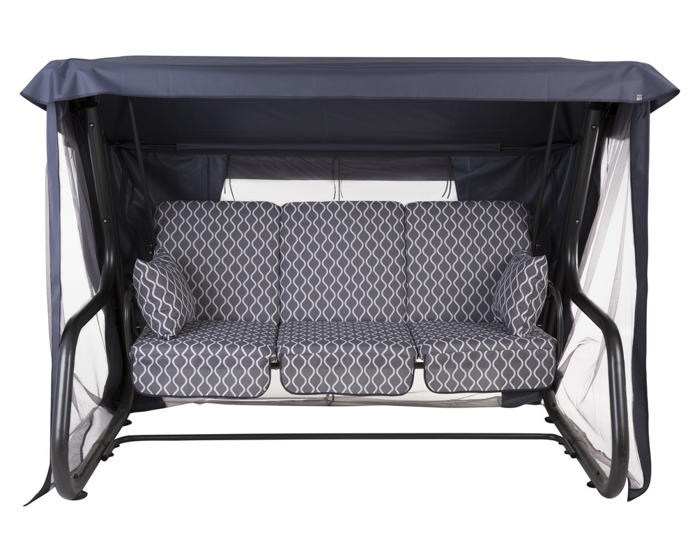 Stříška na houpačku Venezia s moskytiérou - vyrobena z polyesteru, má speciální tunely přizpůsobené ke střešní konstrukci houpačky. Barva stříšky: světle šedá. Moskytiéru lze odepnout.