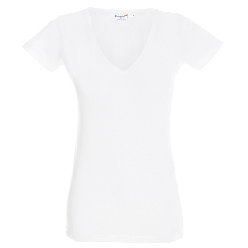 Dámské tričko s výstřihem do V. Ušité z hladkého materiálu single jersey, má elastický lem a dvojté švy. Gramáž: 160g/m2 Složení: 100% bavlna, šedá barva: 90% bavlna, 10% viskoza.