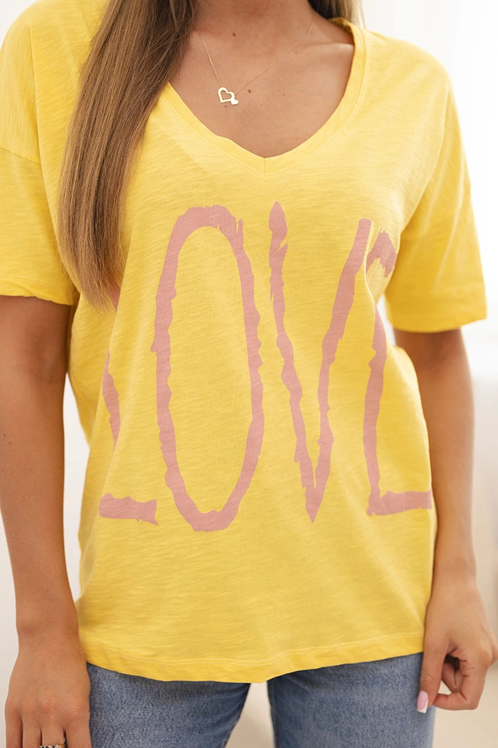 Pohodlí a styl v jednom! Tato dámská blůza s výstřihem do V je ideální volbou na každý den. Vyrobena ze 100% přírodní bavlny, zaručuje prodyšnost, měkkost a komfort nošení i v teplejších dnech. Volný střih zajišťuje, že blůza skvěle padne na postavu, a výstřih V jemně zvýrazňuje krk. Na přední straně je viditelný módní, kontrastní nápis „LOVE“, který dodává celku moderní, městský charakter. To je ideální volba na procházku, nákupy nebo setkání s přáteli – spojte ji s šortkami, kalhotami nebo sukní a užívejte si pohodlí ve stylovém provedení. Velikost je univerzální a bude vhodná pro dámy ve velikosti S, M nebo L. Vlastnosti produktu: Střih: volný, komfortní Materiál: 100% bavlna – měkká a prodyšná Výstřih: do V (V-neck) Styl: casual, městský Rukávy: krátké Detaily: velký potisk vpředu „LOVE” Made in Turkey Rozměry uvedené níže jsou měřeny na plocho +/- 1 cmPro získání obvodu šířku násobíme 2 Složení materiálu: 100% Bavlna Rozměry: Celková délka: 61 cm Šířka pod pažemi: 59 cm (po natáhnutí do 59 cm) Délka rukávu od podpaží: 13 cm Délka rukávu od ramene: 12 cm