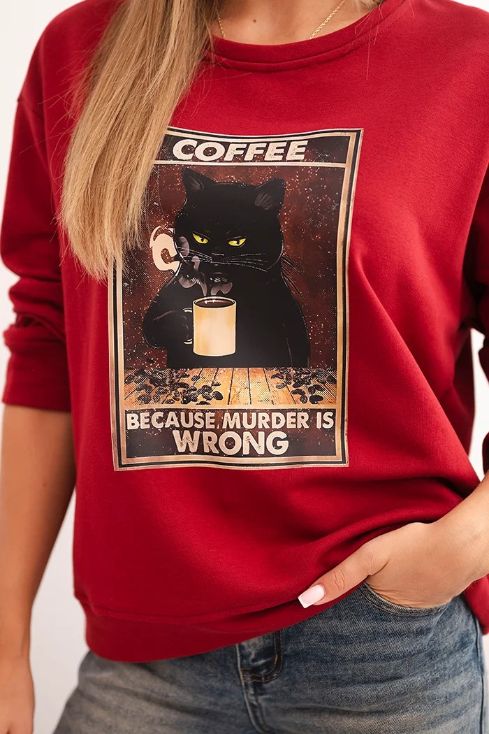 Hledáte mikinu, která spojuje pohodlí, smysl pro humor a módní vzhled? Tato dámská mikina s potiskem kočky držící kávu a nápisem "Because murder is wrong" je ideální volbou pro milovnice netradičních stylizací. Volný střih zajišťuje svobodu pohybu a měkký materiál garantuje komfort po celý den. Mikina má klasický, kulatý výstřih a dlouhé rukávy, které dobře sedí. Je to skvělá volba jak na každodenní nošení, tak na chladnější večery – ideální k džínům, legínám nebo sukni. Originální potisk dodává charakter a přitahuje pohledy. Velikost je univerzální a bude vhodná pro dámy ve velikosti S, M nebo L. Vlastnosti produktu: Střih: volný, casualový Výstřih: kulatý Rukáv: dlouhý, zakončený měkkým manžetou Materiál: měkký a příjemný na dotek Potisk: vtipný motiv s kočkou a kávou Styl: každodenní, s humorem Italská výroba Složení materiálu: 80% Bavlna, 20% Polyester Rozměry uvedené níže jsou měřeny na plocho +/- 1 cmPro získání rozměru obvodu šířku násobíme 2 Rozměry mikiny: Šířka pod paží: 60 cm Celková délka: 62 cm Délka rukávu od paže: 43 cm Délka rukávu od ramene: 50 cm