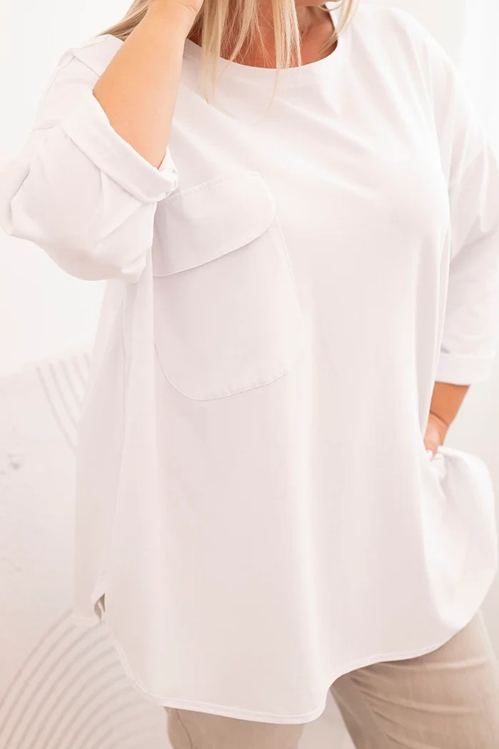 Dámská blůza Plus Size s bavlnou, s kapsou a s ohrnovacími rukávy bílá UNI