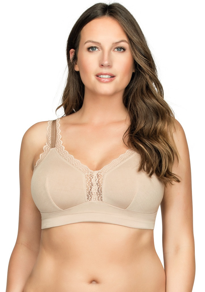 Dámská bezkosticová braletka od britské značky Parfait specializující se na ženy s velikostí D+. Podprsenka je vyrobena z velkého podílu modalu s příměsí elastanu a tím využívá vlastnosti, jako je dokonalá jemnost, pružnost, stálobarevnost i po několikanásobném praní, vysokou odolnost a pod. Má velmi dobrou nasáklivost a schopnost rychle odvádět pot od povrchu těla, což přispává k příjemným pocitům při nošení. Braletka má krajkové obvody kolem košíčků, které přecházejí až k ramenům. Ramínka jsou lehce délkově nastavitelná, v zadní části se dají ramínka zkřížit pomocí háčku na sponách. Obvod zpevňují pružné boční kostice. Obvod je ukončen po spodním obvodu všitou gumičkou. Zadní zapínání je na čtyři háčky a tři pozice. Podprsenka je velmi příjemná na těle ve sportovně-elagantním designu a je vhodná na každodenní nošení při zachování komfortu každé ženy. Materiálové složení: 95% modal, 5% elastan. Pokud si nejste jisti velikostí vaší podprsenky, přečtěte si prosím výše uvedený článek: "Jak na správnou podprsenku". Pro přesnější orientaci vaší velikosti podprsenky doporučujeme použít přiloženou velikostní tabulku. Správnou velikost této podprsenky můžete objednat v EU nebo UK značení s ohledem na to, na kterou jste zvyklí a která vám vyhovuje. Pokud velikost vybíráte dle podprsenky, kterou máte již doma v šuplíku, objednávejte dle UK velikosti na štítku podprsenky a UK velikosti v e-shopu.
