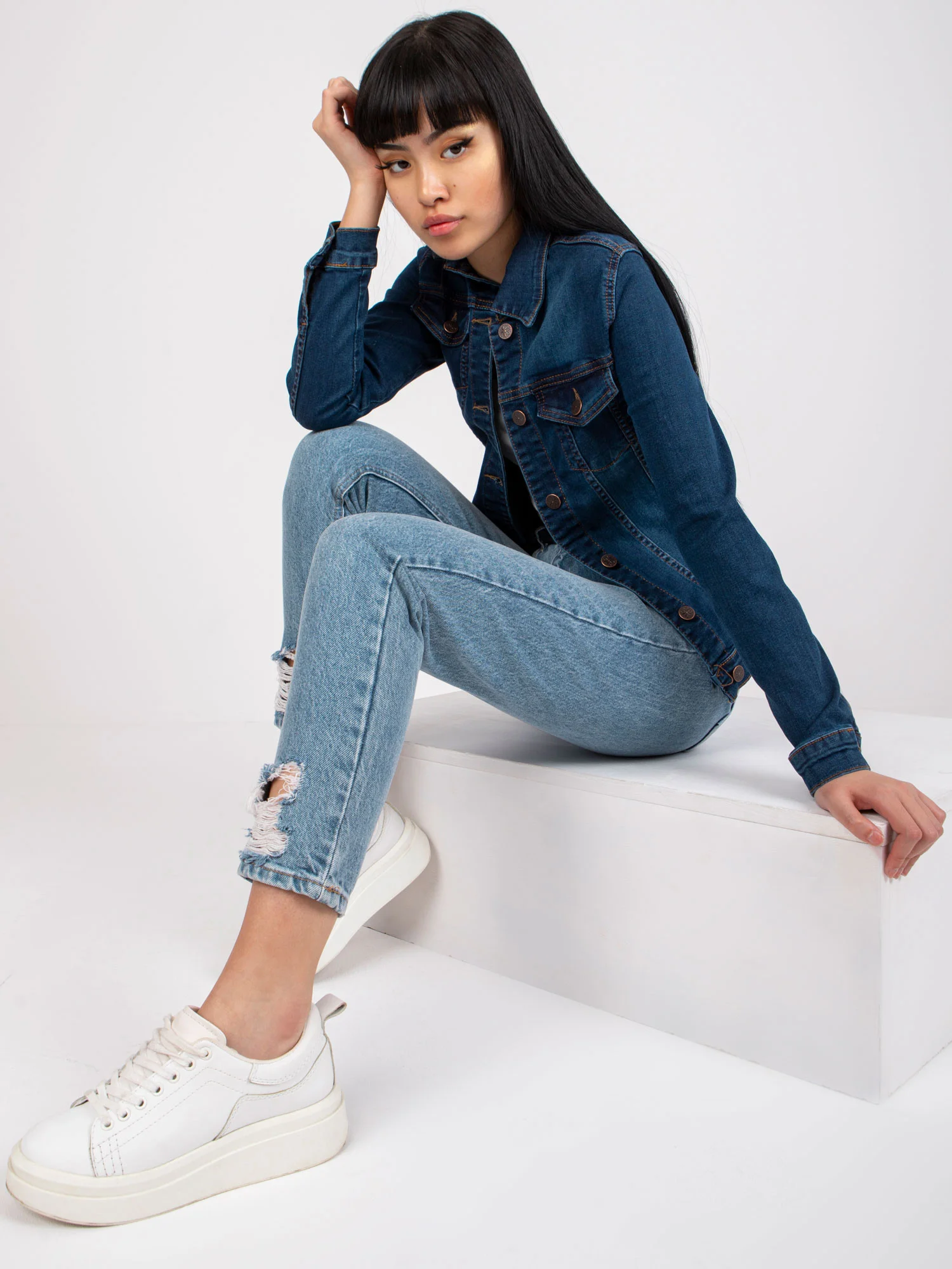 Příjemná na nošení díky vysokému podílu bavlny. materiálové složení: 97% bavlna, 3% spandex způsob praní: praní v pračce na 30°C dlouhý rukáv s manžetou na riflový knoflík límeček  prsní kapsy s patkou na riflový knoflík zapínání na riflové knoflíky střih mírně projmutý délka na zadek barva tmavě modrá klasická nadčasová džíska volnočasová, do zaměstnání, do školy, na procházky, na rande apod. Modelka má na sobě velikost S. Míry modelky: výška 167 cm, poprsí 73 cm, pas 64 cm, boky 91 cm. Rozměry bundy velikosti S, měřeno naplocho: šířka v podpaží - 46 cm, celková délka - 57 cm, délka rukávu - 59 cm.