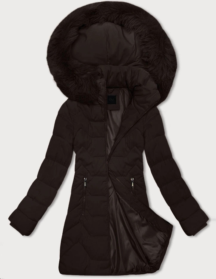 Věnujte prosím pozornost při výběru velikosti dle velikostní tabulky uvedené níže. Velikosti neodpovídají běžně nošené konfekci. Prošívaná bunda s kapucí Bunda je vypasovaná, je zateplená syntetickou péřovou výplní, má dvě kapsy a zapíná se zipem. Model má kapuci olemovanou kožešinou. Jak kapuci, tak i kožešinu je možné odepnout. Na koncích rukávů jsou skryté stahovací lemy. Bunda má délku do poloviny stehen. Složení: 100 % polyester.