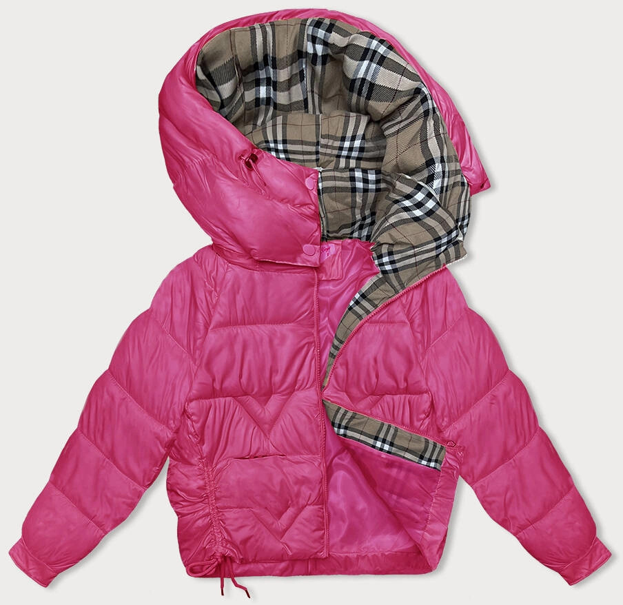 Dámská bunda ve fuchsijové barvě pro přechodné období s károvanou podšívkou (842) odstíny růžové L (40)