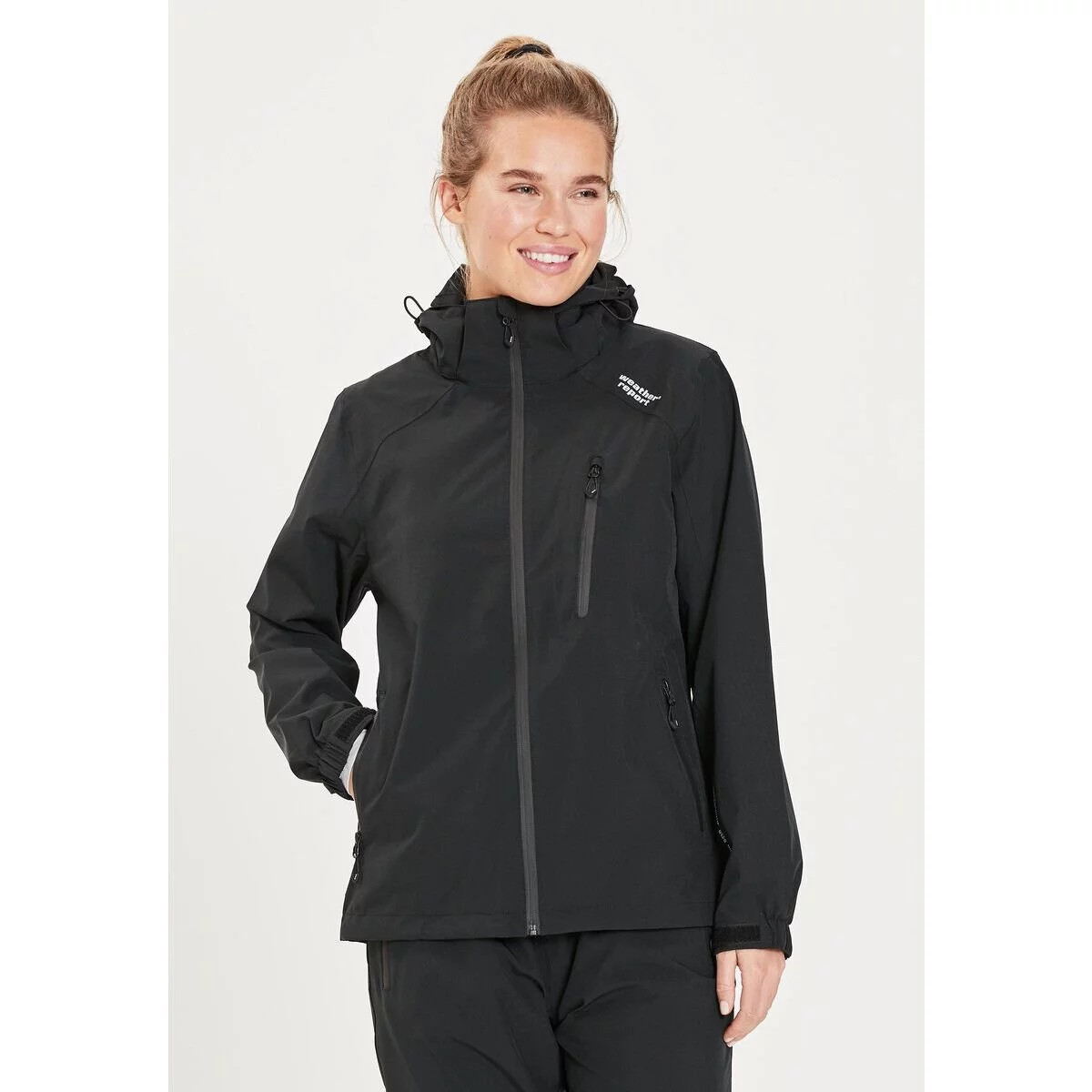 Tato dámská bunda do deště Weather Report Camelia je lehký a stylový model s přiléhavým střihem a dobrými funkčními vlastnostmi - ideální pro deštivé a větrné dny. Bunda je navržena s odnímatelnou kapucí s možností nastavení jak u krku, tak u lemu. Na přední straně je model vybaven průběžným zipem s chráničem brady. Na zápěstích je vybavena přiléhavým elastickým zakončením a regulací na suchý zip, ve spodní části bundy je umístěna nastavitelná elastická šňůrka. Vyrobena z pružného materiálu, který zajišťuje optimální volnost pohybu a zároveň vás maximálně ochrání před deštěm a větrem.W-Pro - prodyšný, větru a voděodolný zátěr s podlepenými švynepromokavý materiál s parametrem 15000mmodnímatelná kapuce s úpravou u krku a lemunastavitelné lemy rukavic na suchý zipnastavitelná elastická šňůrka ve spodní části bundyprodyšná síťovaná podšívkatři kapsy na zip