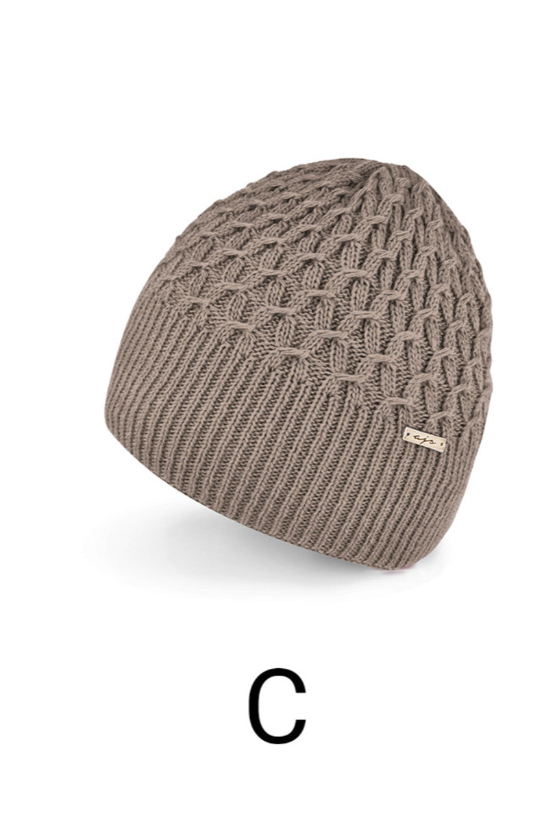 Dámská čepice z podkladu z hřejivé vlny příjemné na dotek, zdobená vzorovaným prošíváním a malým stříbrným štítkem s logem společnosti. .
