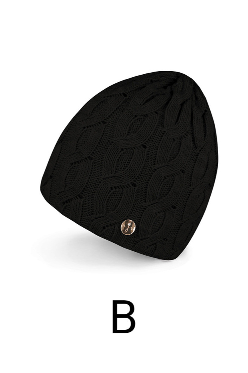Dámská zimní čepice. Hřejivá, vyrobená ze spodní vrstvy úpletu, měkká a pružná. Volnější střih, mírně zvýšený okraj, módní zimní vzor po celé ploše. Zdobená malou plaketou s logem společnosti .