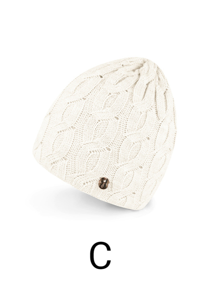 Dámská zimní čepice. Hřejivá, vyrobená ze spodní vrstvy úpletu, měkká a pružná. Volnější střih, mírně zvýšený okraj, módní zimní vzor po celé ploše. Zdobená malou plaketou s logem společnosti .