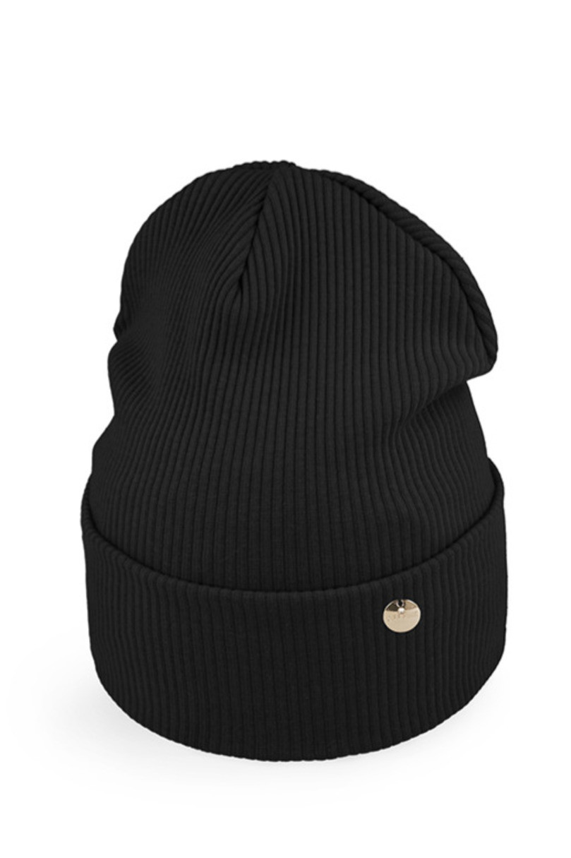 Dámská čepice s ohrnutím, vyrobená ze spodníóy vrstvy žebrované bavlny..