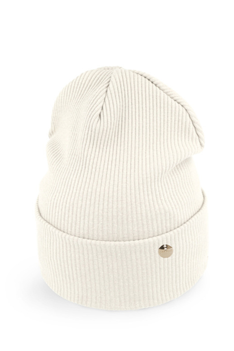 Dámská čepice s ohrnutím, vyrobená ze spodníóy vrstvy žebrované bavlny..