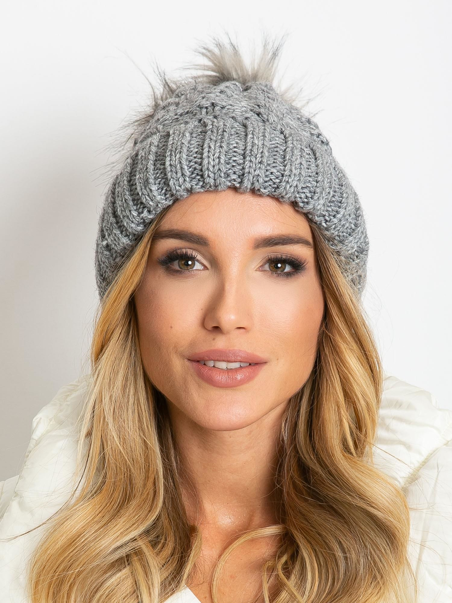 Zimní čepice s šedou bambulí. příslušenství: zateplená podšívka složení tkaniny: 70 % polyakryl, 30 % vlna způsob mytí: ruční mytí Modelka má na sobě jednu velikost.