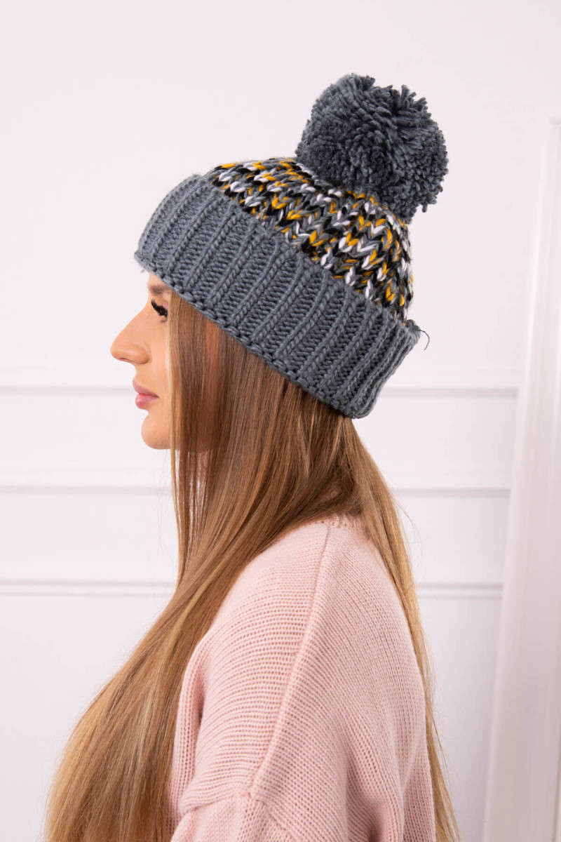Dámská čepice Ellen s bambulí K325 tmavě šedá+žlutá UNI