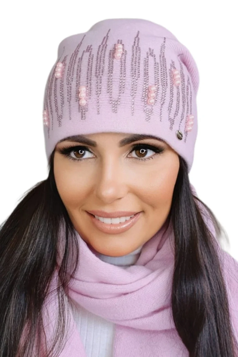 Wykonana z wysokiej jakości, wełnianej przędzy - bardzo przyjemnej w dotyku. Przód produktu rozświetlają połyskujące, odpowiednio dobrane kolorystycznie dżety w towarzystwie perłowych koralików. Tył czapki został szczepiony zaszewkami, dzięki czemu GINA perfekcyjnie układa się na głowie. Olśniewającą całość dopełnia srebrny, firmowy znaczek. Propozycja na okres jesienno-zimowy, dostępna w kilku wariantach kolorystycznych. Skład: 80% WEŁNA, 20% POLIAMID