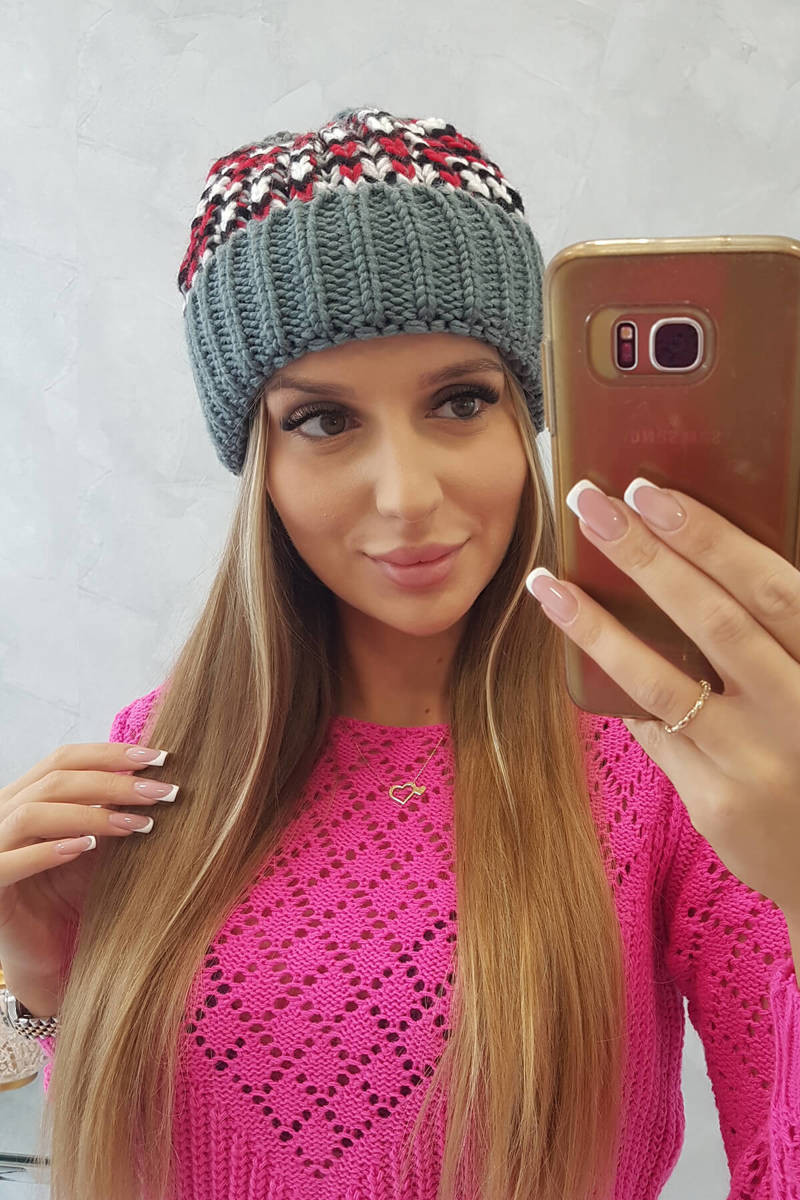 Domů Oblečení a móda Módní doplňky Zimní čepice Dámská čepice Iris K348 tmavě šedá+červená UNI