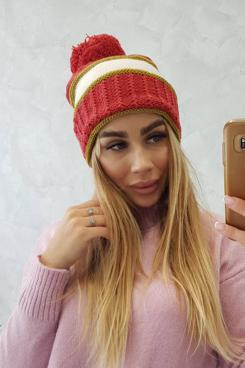 Dámská čepice Kinga K297 rudá+světlá khaki+ecru UNI