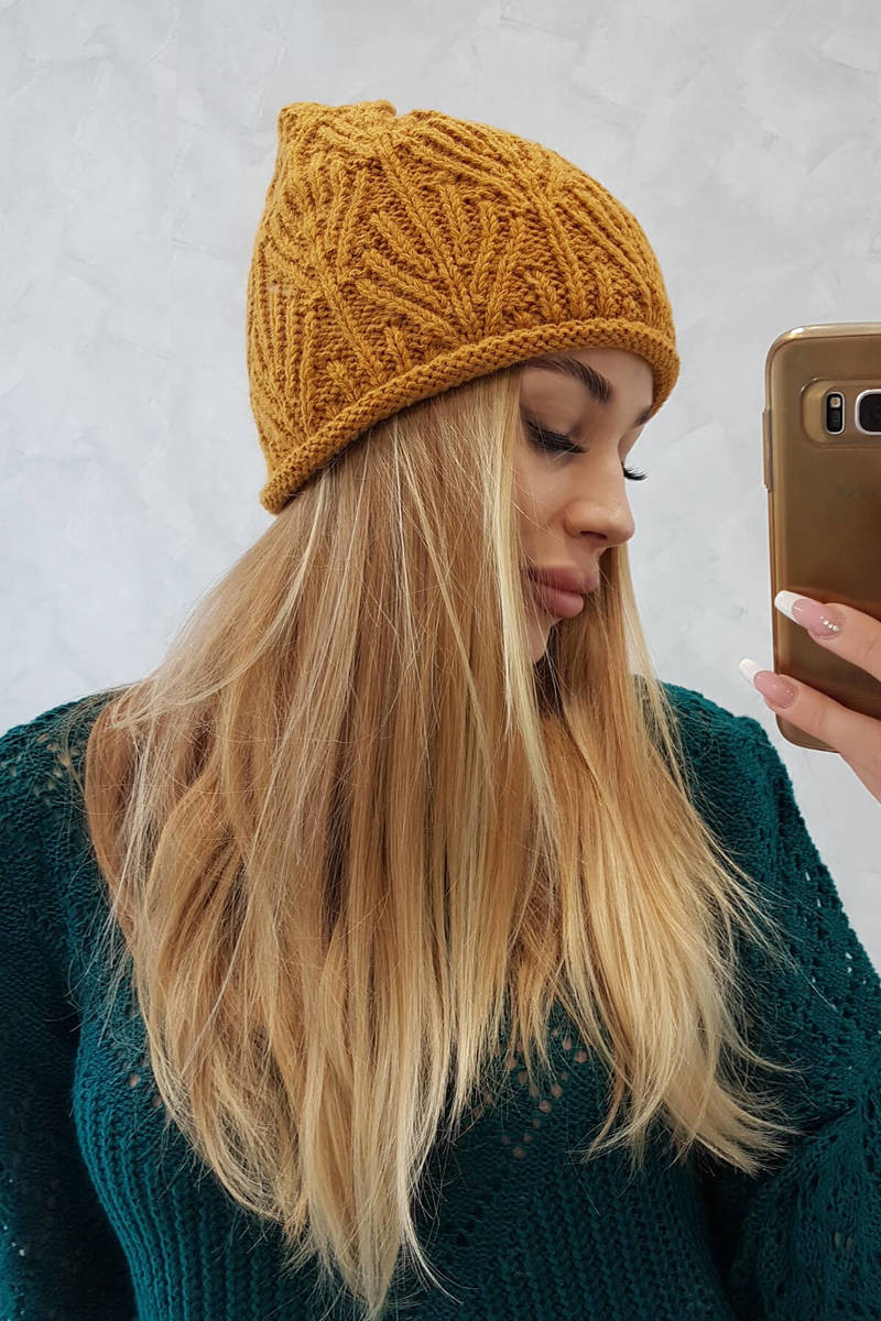 Domů Oblečení a móda Módní doplňky Zimní čepice Dámská čepice Leaves K245 mustard UNI
