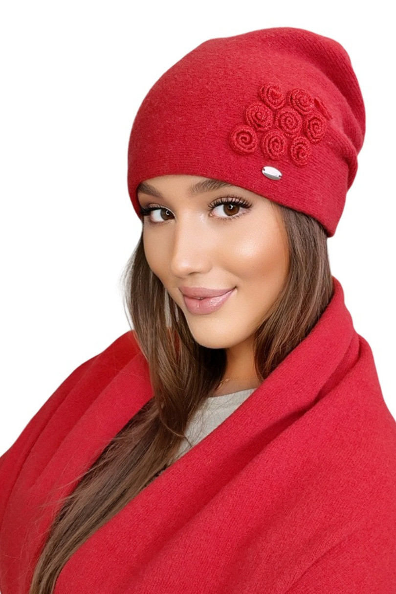 Dámská čepice vyrobená z velmi kvalitní a na dotyk příjemné vlněné příze. Na zadním dílu jsou záševky, díky kterým čepice pěkně padne a na hlavě vyniká. Klasický tvar je obohacený ozdobnými, barevně sladěnými aplikacemi ve tvaru "slimáků". LUNA je elagantní a pečlivě vyrobenou nabídkou pro podzimní a zimní období. Složení: 80 % vlna, 20 % polyamid.