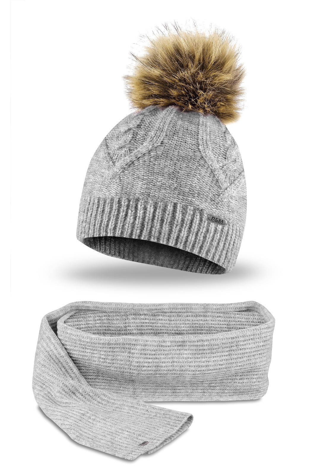 Teplá dámská čepice - jednovrstvá - zdobená kostkovaným vzorem - huňatá bambule Složení: 73,5 % akryl, 14 % nylon, 12,5 % PBT