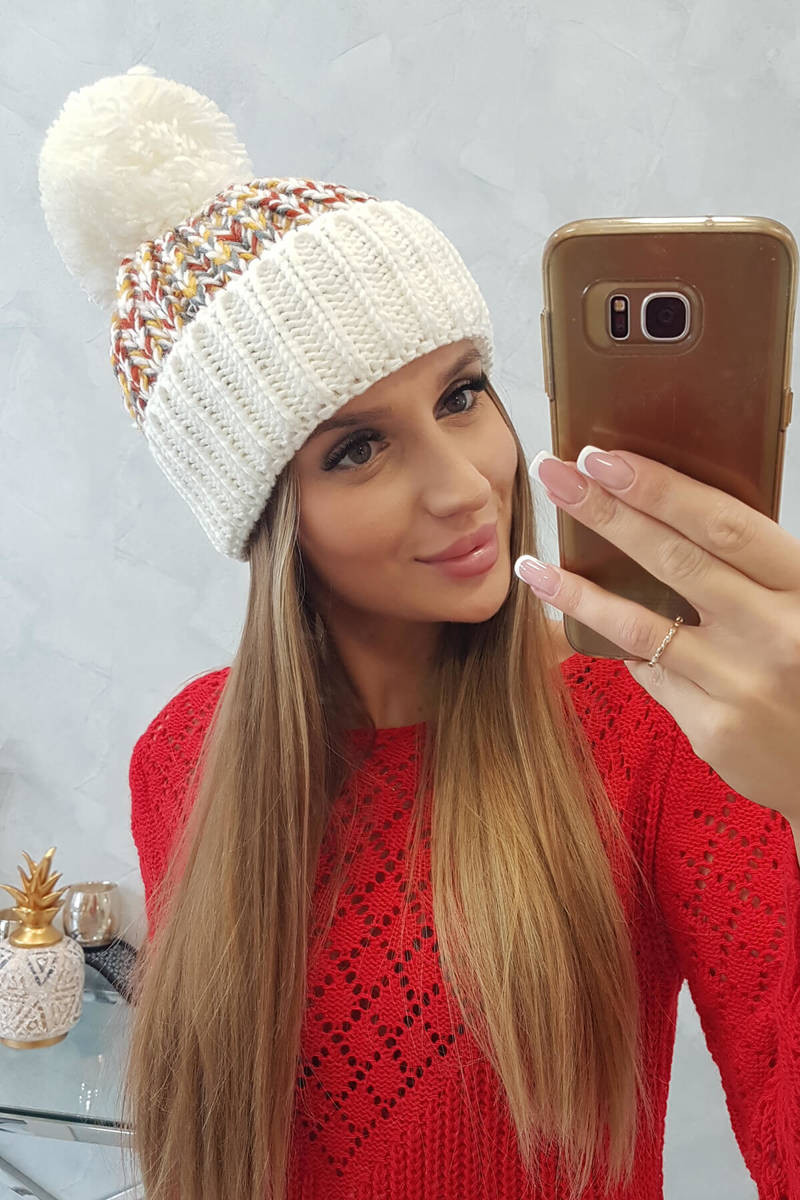 Dámská čepice s bambulí Ellen K325 ecru UNI