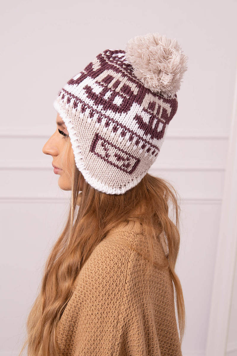 Domů Oblečení a móda Módní doplňky Zimní čepice Dámská čepice s bambulí Rosa K368 vínová+bílá+béžová UNI