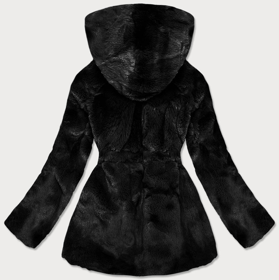 Dámská černá bunda - kožíšek s kapucí (BR9743-1) odstíny černé XL (42)
