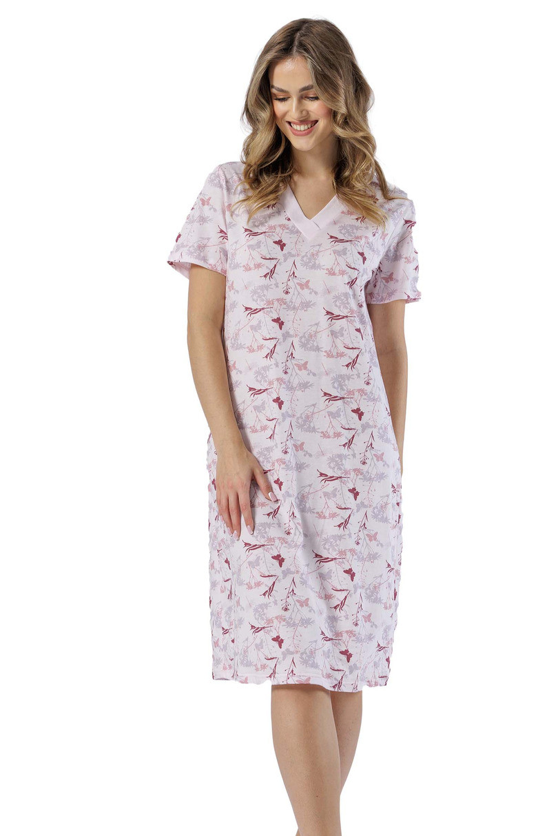 Dámské tričko s krátkým rukávem, vyrobené ze vzorované bavlny, s posádkovým výstřihem a kontrastním lemováním, délka ke kolenům. Složení: 100% bavlna .