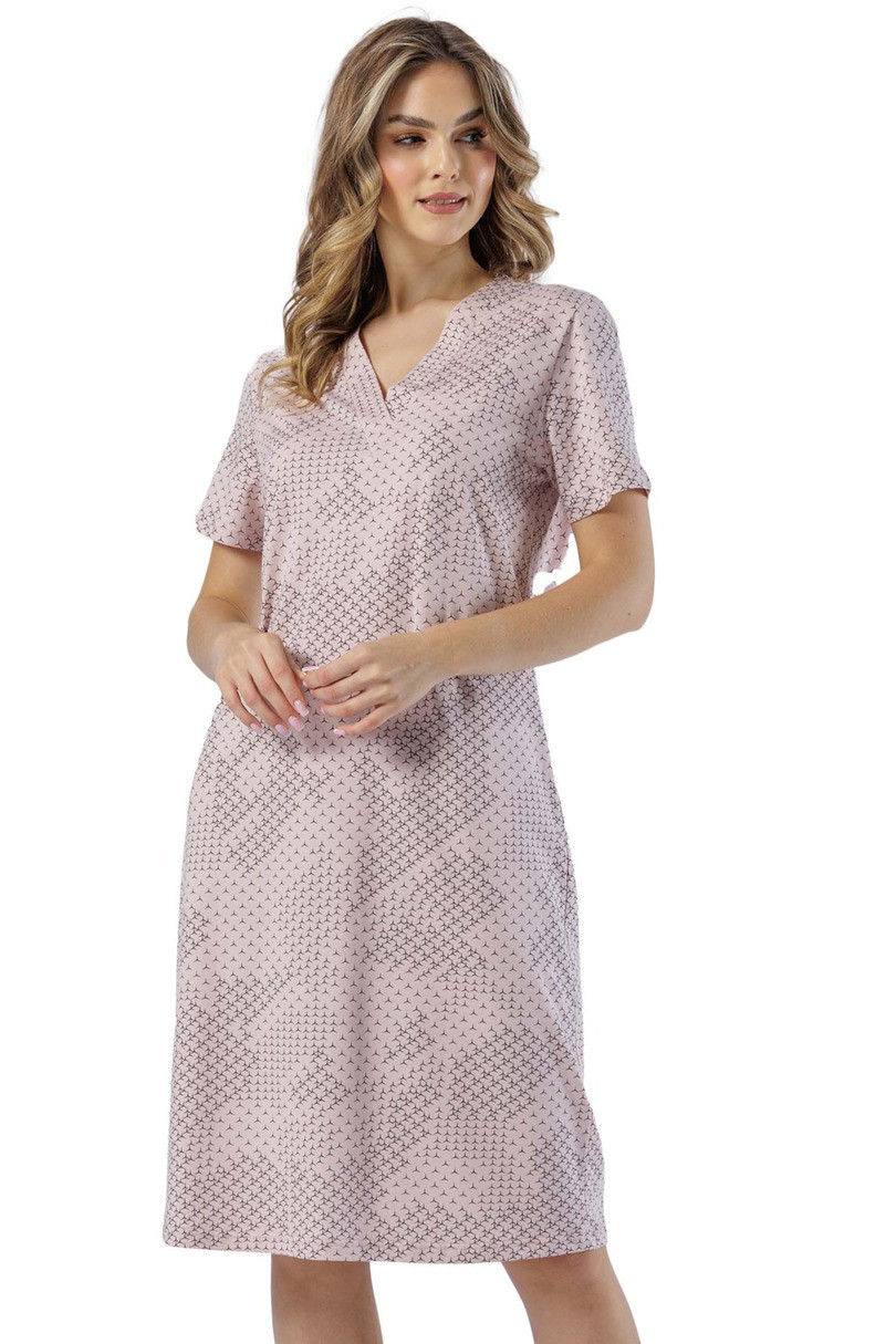 Dámské tričko s krátkým rukávem ze vzorované bavlny, s výstřihem a délkou ke kolenům. Složení: 100% bavlna .
