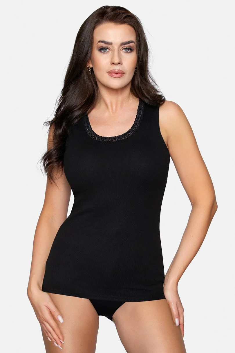 Dámské tričko ušité z kvalitní bavlny. Má výstřih zakončený ažurovou krajkou a široká ramínka Složení: 100% bavlna .