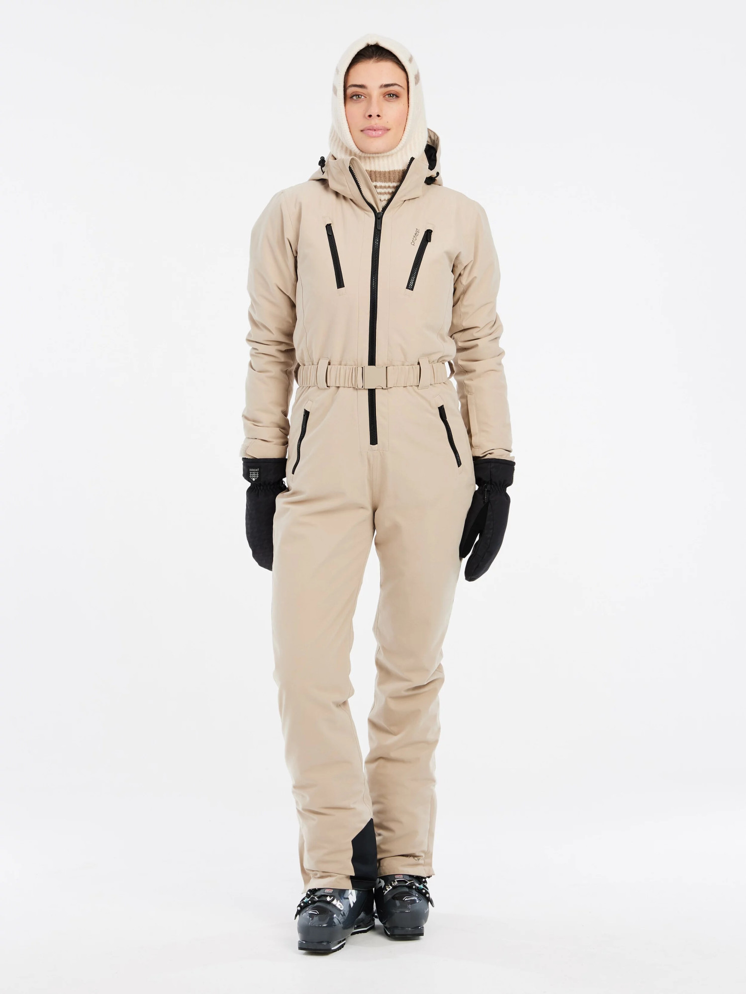 Lyžařská kombinéza PRTSAGA od značky Protest splňuje všechny požadavky na styl i funkčnost. Díky jednobarevnému béžovému designu a elegantnímu slim střihu nikdy nevyjde z módy. Vnitřní manžety s otvory na palce, kotníkové manžety a silikonový protiskluzový lem vám poskytují potřebnou kontrolu na svahu a zároveň chrání před větrem a chladem. Zapínání na suchý zip a zipy na spodní části nohavic usnadňují oblékání a svlékání. Díky povrchu s úpravou peach skin je PRTSAGA příjemná na dotek. Kombinéza nabízí 10g prodyšnost a PFC-free voděodolnost s hodnotou 10K, takže zůstanete vždy v suchu. Pevný pas a zapínání na pásek zajišťují dokonalé přilnutí. A co kapsa na zip? Skvělá pro uložení nezbytností.