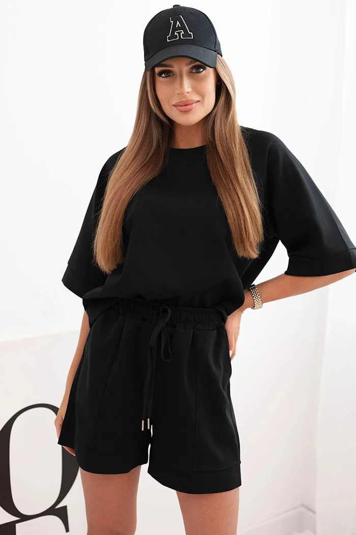 Tato dámská souprava je ideální kombinací pohodlí a stylu pro každodenní nošení. Mikina s krátkým rukávem a volným střihem a šortky s elastickým pasem tvoří komplet, který je vhodný jak na doma, tak na procházky či víkendový odpočinek. Ušitá z mimořádně měkkého materiálu typu máslíčko zajišťuje pohodlí po celý den. Díky univerzálnímu střihu a nadčasovému stylu je souprava skvělým základem pro každodenní outfity – stačí přidat sportovní boty nebo lehké pantofle. Italská výroba zaručuje vysokou kvalitu a pečlivé zpracování. Velikost je univerzální a hodí se pro ženy velikosti S, M nebo L. Vlastnosti produktu: Střih: mikina s krátkým rukávem, šortky s kapsami a elastickým pasem Materiál: měkká, elastická viskóza typu máslíčko Pohodlný střih – ideální pro každodenní nošení Funkčnost: šortky se šňůrkou v pase, volná mikina Detaily: pečlivé zakončení, příjemná na dotek látka Styl: ležérní, ideální na jaro a léto Italská výroba Složení materiálu: 95% viskóza 5% elastan Rozměry uvedené níže jsou měřeny naplocho +/- 1 cm Pro získání obvodu šířku násobíme 2 Rozměry mikiny: Šířka pod pažemi: 55 cm Celková délka: 56 cm Rozměry šortek: Šířka v pase: 33 cm (po roztažení: 50 cm) Celková délka: 39 cm Šířka v bocích: 54 cm