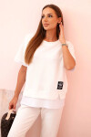 Domů Oblečení a móda Dámské oblečení Dámské halenky a košile Dámská máslová souprava s krátkým rukávem a kalhotami ecru UNI