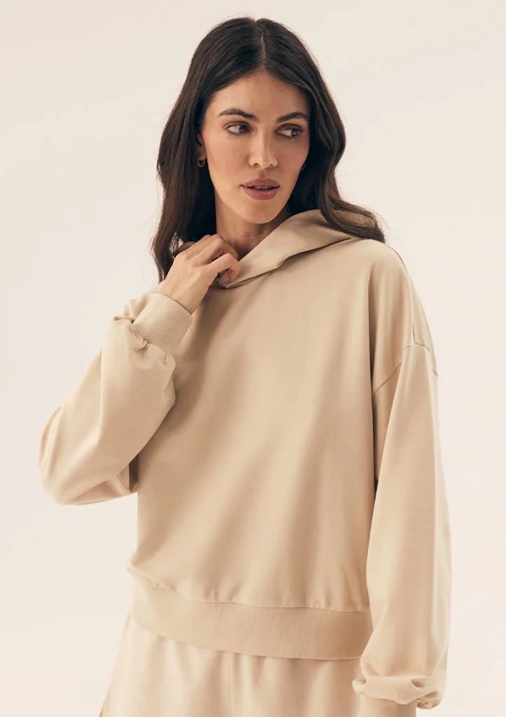 Pohodlí a styl v jednom – přesně to nabízí tato dámská mikina od značky ESOTIQ. V jemném béžovém odstínu působí elegantně a snadno ji zkombinuješ s jakýmkoliv outfitem. Mikina má pohodlnou kapuci, která ti poskytne útulné zázemí v chladnějších dnech. Volnější střih s mírně spadlými rameny a žebrovanými lemy na rukávech i spodním okraji zajišťuje moderní vzhled a příjemné nošení. Díky měkkému a příjemnému materiálu si užiješ komfort nejen doma, ale i při procházkách venku. Minimalistický design bez zbytečných detailů dělá z této mikiny univerzální kousek, který nesmí chybět v žádném šatníku. Materiálové složení: 60% bavlna, 40% polyester.