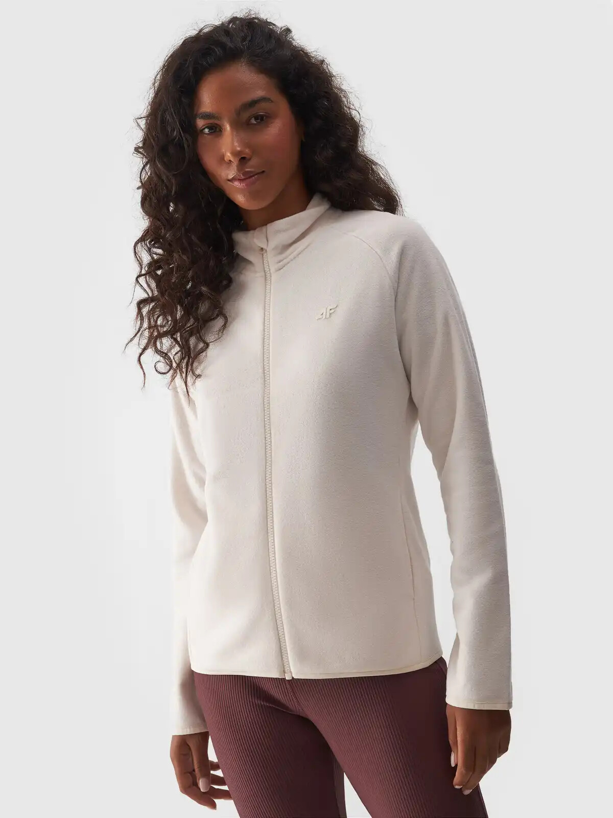 Dámská fleecová mikina - univerzální řešení pro různé podmínky Díky svým tepelným vlastnostem je vynikající volbou jako hřejivá vrstva pro chladné dny v přechodném období a v zimě. Hodí se pro každodenní i sportovní aktivity, jako je lyžování, snowboarding a treking. Fleecové oblečení se vyznačuje nejen svými tepelně izolačními vlastnostmi, ale také lehkostí a mimořádnou měkkostí materiálu na dotek. Snadno se udržuje a při kontaktu s vlhkostí rychle schne, což zvyšuje jeho funkčnost. Jeho hlavním účelem je poskytnout teplo bez zvýšení hmotnosti a zároveň zaručit velkou volnost pohybu a maximální pohodlí. Středně silný fleece 220 gsm se vyznačuje jemnou pletenou strukturou, která se skládá z miniaturních trubiček naplněných vzduchem. Díky tomu je materiál relativně lehký a zároveň zaručuje dobrý tepelný komfort. Kromě toho má hydrofobní vlastnosti, takže je po vyjmutí z pračky prakticky suchý. Díky své konstrukci se nemačká a zachovává si svůj tvar po mnoho sezón. Fleece se střední gramáží je jedním z nejběžnějších modelů, protože dobře poslouží jako svrchní oblečení i jako vnitřní hřejivá vrstva. Má střih regular, který se pohodlně přizpůsobí postavě a standardní délku sahající k linii boků. Dámský fleece 4F je funkční materiál s technologií 4F Warm, který zajistí maximální pohodlí. Dámská fleecová mikina je vyrobena z tenkého mikrofleecu, který se vyznačuje dobrou tepelnou izolaci při extrémně nízké hmotnosti. Materiál je prodyšný a rychle schne. Dámská fleecová mikina má stojáček, který chrání krk. Klasicky zakončené manžety. Na bocích jsou 2 otevřené kapsy. Zapínání na jednocestný hlavní zip. Raglánové rukávy neomezují v pohybu.
