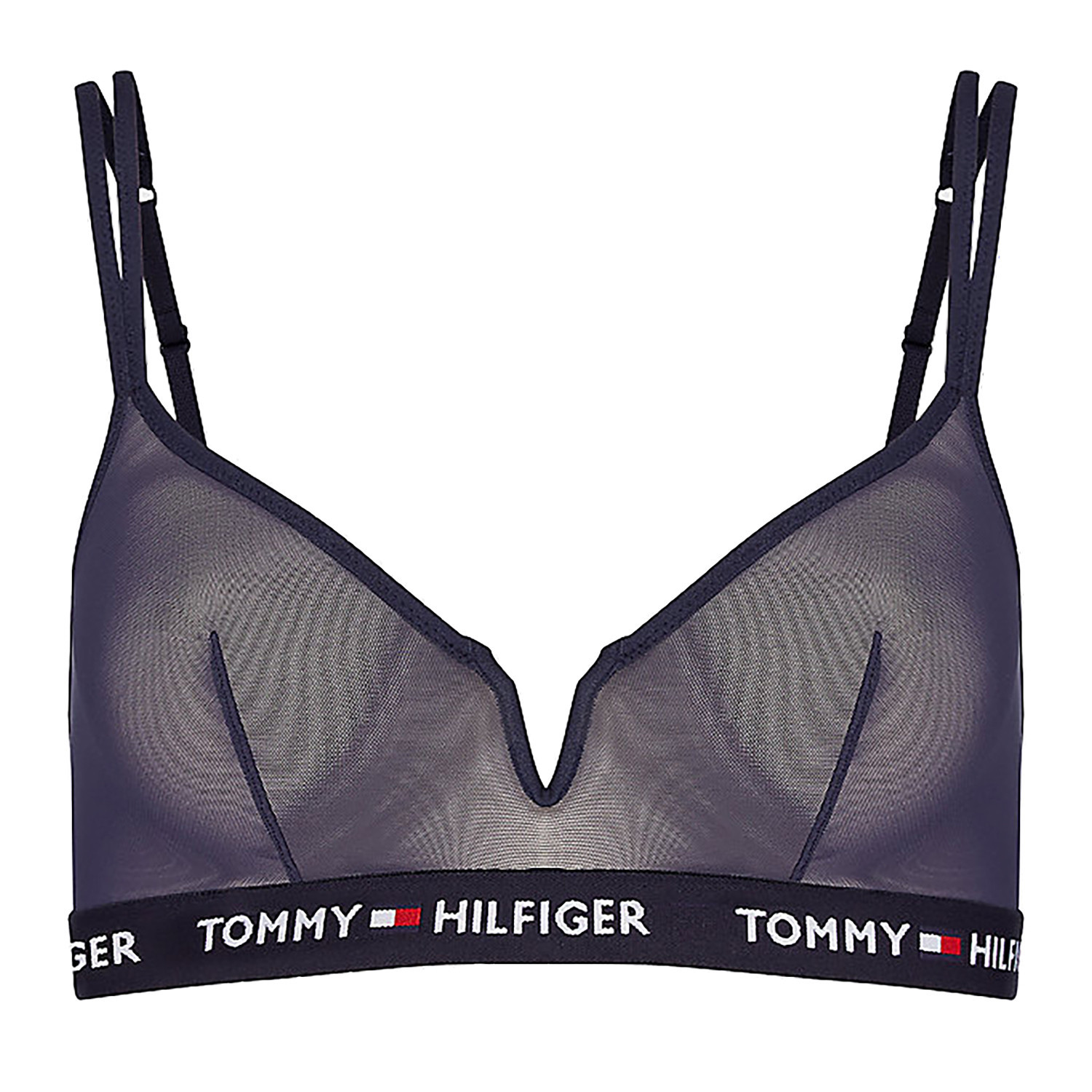 Dámská podprsenka Tommy HilfigerDámská podprsenka od značky Tommy Hilfiger je vyrobena z příjemného materiálu, který je lehce průsvitný, což dodává podprsence elegantní vzhled.Zdobná guma s logem značky dodává podprsence stylový a moderní vzhled. Ramínka jsou nastavitelná a podprsenka se zapíná bez háčků, což zvyšuje pohodlí nošení.Složení podprsenky je 77% nylon a 23% elastan. Tato podprsenka je v tmavě modré barvě, která je elegantní a snadno kombinovatelná s různými outfity.VelikostSMLXLObvod hrudníku (cm)84-8888-9292-96104-108 Prát na 30°C, nesušit v sušičce, nežehlitZemě původu: Thajsko