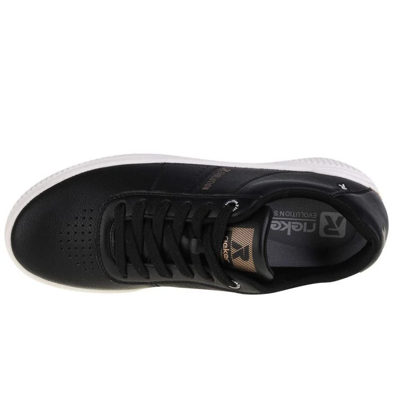 Boty Rieker Evolution W0702-00 Vlastnosti: boty značky Rieker ideální pro každodenní nošení pro ženy nízký model obuv se šněrováním svršek z vysoce kvalitních materiálů gumová podrážka textilní podšívka logo výrobce Barva: černá
