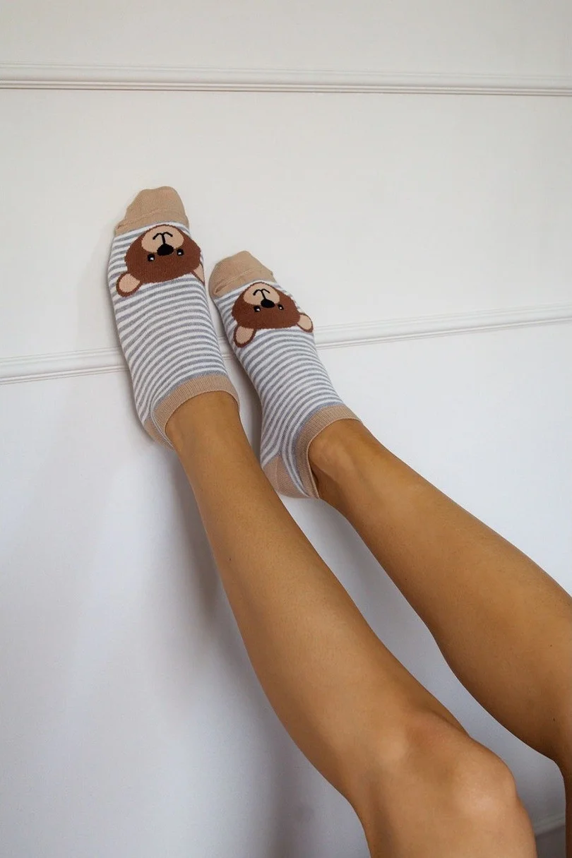 Vyjádřete svůj styl s těmito rozkošnými dámskými pruhovanými ponožkami s medvídky! Tyto jedinečné ponožky kombinují pohodlí s jedinečným designem – velcí roztomilí medvídci a jemné proužky jim dodávají originální vzhled. Jsou vyrobeny z měkké bavlny a poskytují vynikající prodyšnost a pohodlí po celý den. Díky elastickému lemu ponožky dokonale padnou na nohu – jsou ideální pro každodenní styling – do tenisekós i pro domácí relaxaci..