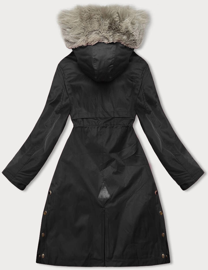 Věnujte prosím pozornost při výběru velikosti dle velikostní tabulky uvedené níže. Velikosti neodpovídají běžně nošené konfekci. Bunda s kapucí Bunda má jednoduchý střih a uvnitř má kožešinovou podšívku. Model má dvě kapsy a zapíná se dvousměrným zlatým zipem. Bunda má kapuci olemovanou kožešinou. Zatímco kapuci není možné odepnout, kožešinu lemující kapuci odepnout lze. Rukávy jsou zateplené syntetickou péřovou výplní a na jejich konci jsou skyté stahovací lemy. V pase modelu je stahující šňůrka. Ve spodní části bundy jsou na bocích patentky. Model má délku do poloviny stehen. Složení: vrchní vrstva - 100 % PU, podšívka - 100 % polyester.