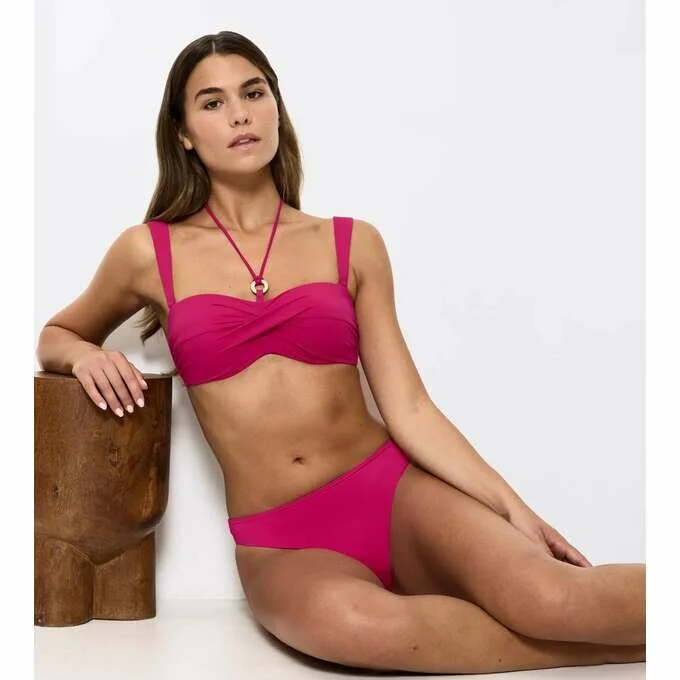 Tento vyztužený horní díl bikin byl navržen pro ženy, které hledají pohodlí a multifunkčnost. Díky odnímatelným a nastavitelným ramínkům jej lze nosit jako bandeau, aniž by ztratil oporu. Středové řasení vytváří lichotivý akcent a díky částečně recyklovanému polyamidu je jemný na dotek a odolný. - Vyztužený horní díl bikin - Rychleschnoucí pěnové vycpávky - Nastavitelná a odnímatelná ramínka - Silikonový pásek a boční velrybí kostice pro lepší podporu - Odolná a měkká tkanina Materiálové složení: 77 % polyamid, 23 % elastan