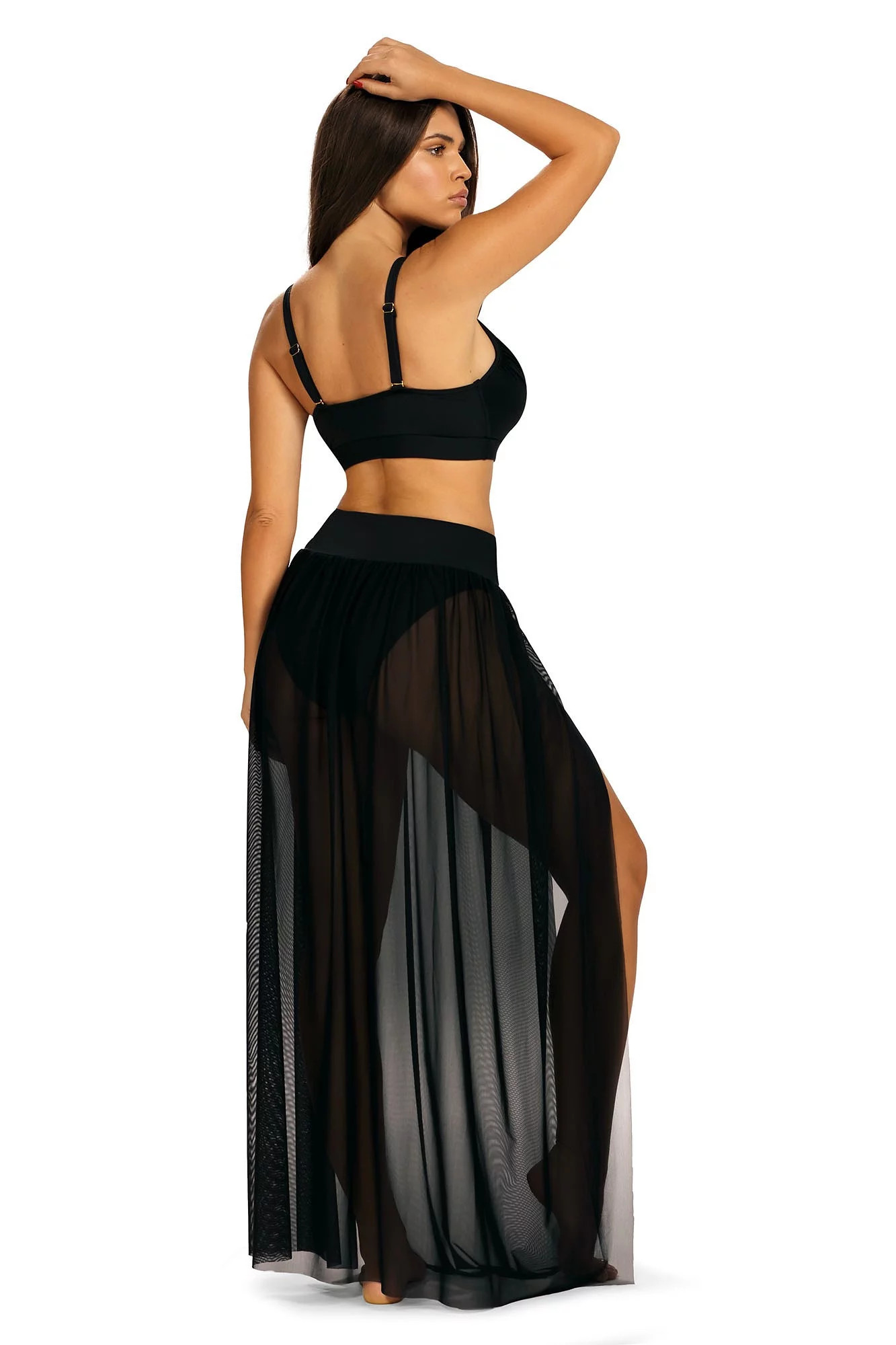 Plážová sukně-pareo - z tenké průhledné síťoviny - elastický pás - velký rozparek na boku Materiálové složení: 85 % polyamid, 15 % elastan