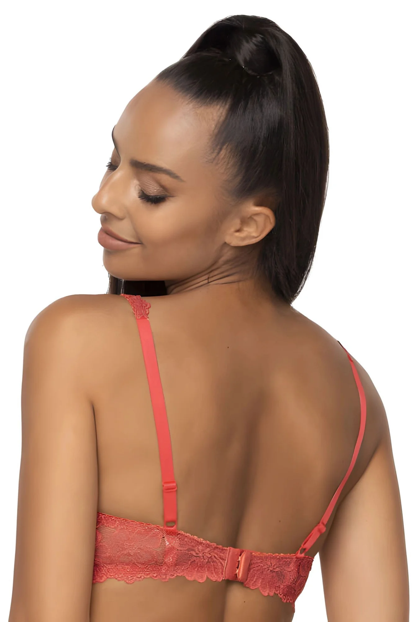 Dámská podprsenka 053/22 Carmela coral plus MAT - korálová barva - z krajky s květinovým motivem - vyztužená - vnitřní strana košíčků podšitá bavlnou - boční části s kosticí - nastavitelná a neodepínatelná krajková ramínka - nadzvedává a přidržuje poprsíMateriálové složení: 44% polyamid + 18% polyester + 16% bavlna + 16% polyuretan + 6% elastan