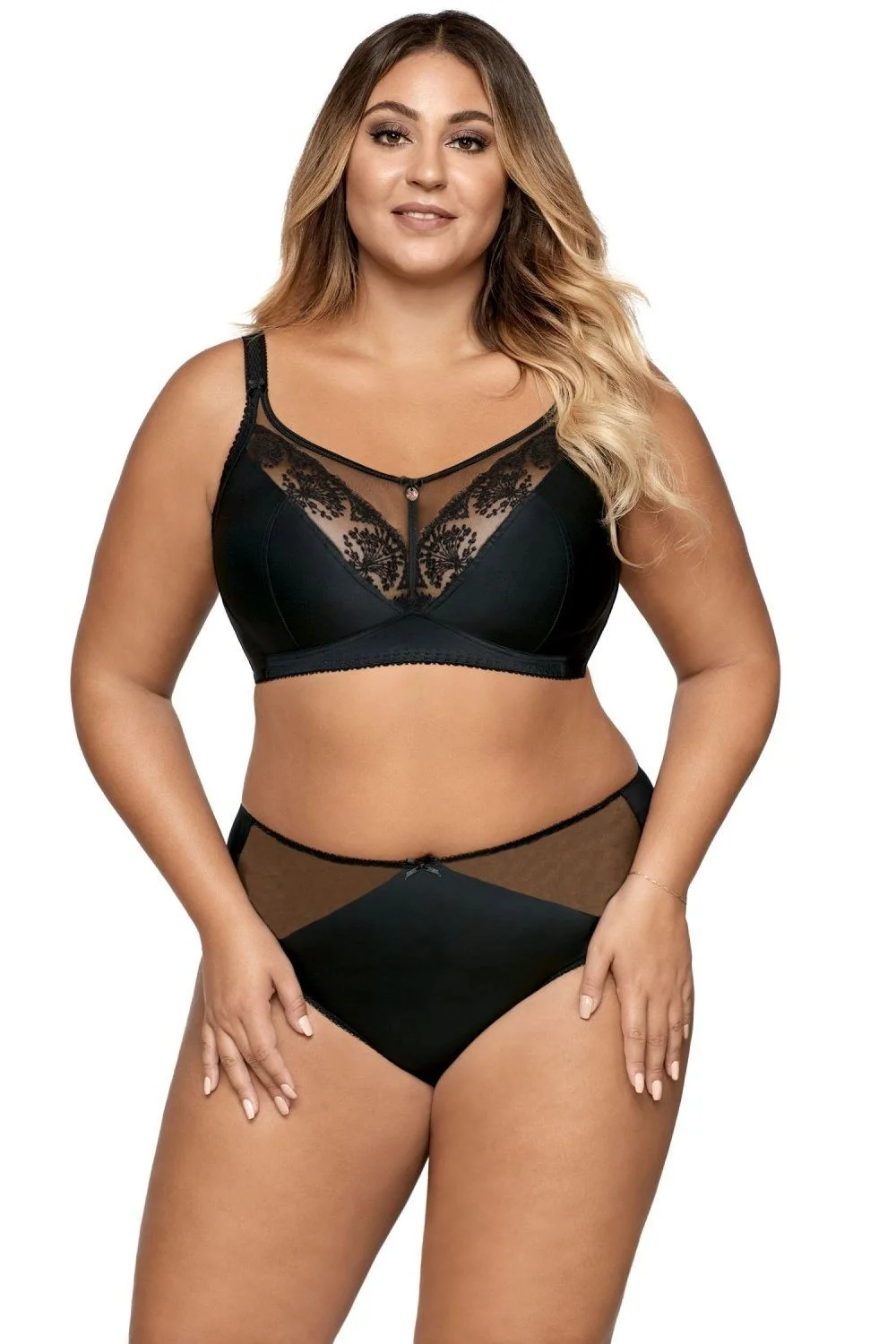 Dámská podprsenka 1691/1 Libi black AVA - černá barva - typ soft - měkké hladké košíčky - podšité látkou - horní část z průsvitné síťoviny a krajky - široká ramínka - zapínání na dva nebo tři háčky s třístupňovým zapínáním - ideální pro ženy s větším a plnějším poprsímMateriálové složení: 88% polyamid + 8% bavlna + 4% elastan Velikosti Podprsenky 65 70 75 80 85 90 95 100 105 110 115 Obvod pod prsy (cm) 63-67cm 68-72cm 73-77cm 78-82cm 83-87cm 88-92cm 93-97cm 98-102cm 103-107cm 108-112cm 113-117cm Obvod přes prsa (cm) A 77-79cm 82-84cm 87-89cm 92-94cm 97-99cm - - - - - - B 79-81cm 84-86cm 89-91cm 94-96cm 99-101cm 104-106cm 109-111cm 114-116cm 119-121cm 124-126cm 129-131cm C 81-83cm 86-88cm 91-93cm 96-98cm 101-103cm 106-108cm 111-113cm 116-118cm 121-123cm 126-128cm 131-133cm D 83-85cm 88-90cm 93-95cm 98-100cm 103-105cm 108-110cm 113-115cm 118-120cm 123-125cm 128-130cm 133-135cm E 85-87cm 90-92cm 95-97cm 100-102cm 105-107cm 110-112cm 115-117cm 120-122cm 125-127cm 130-132cm - F 87-89cm 92-94cm 97-99cm 102-104cm 107-109cm 112-114cm 117-119cm 122-124cm 127-129cm - - G 89-91cm 94-96cm 99-101cm 104-106cm 109-111cm 114-116cm 119-121cm 124-126cm - - - H 91-93cm 96-98cm 101-103cm 106-108cm 111-113cm 116-118cm 121-123cm - - - - I 93-95cm 98-100cm 103-105cm 108-110cm 113-115cm 118-120cm - - - - - J - 100-102cm 105-107cm 110-112cm 115-117cm - - - - - - K - - 107-109cm 112-114cm - - - - - - - L - - 109-111cm - - - - - - - - Velikosti Kalhotky, Pyžama a noční košile S M L XL 2XL 3XL Obvod pasu (cm) 64-68cm 70-74cm 76-80cm 82-86cm 88-92cm 94-98cm Obvod přes boky (cm) 90-94cm 95-100cm 101-106cm 107-113cm 114-120cm 121-128cm Obvod hrudníku (cm) 80-84cm 86-90cm 92-96cm 98-104cm 108-114cm 116-122cm