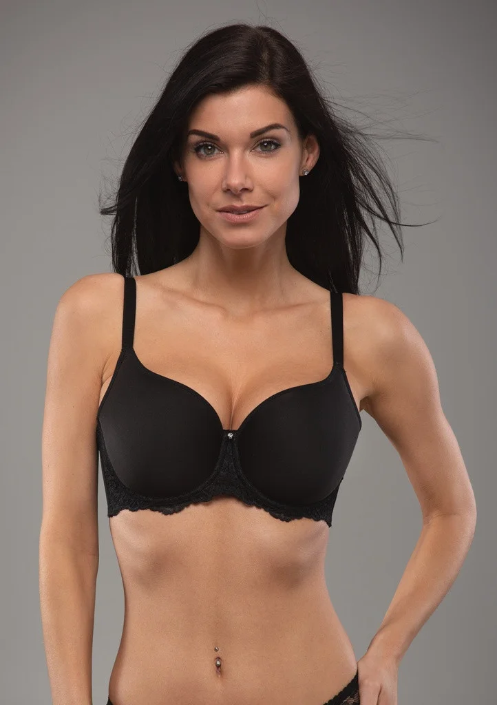 Dámská podprsenka značky Fantasy. Díky použitému 3D spacer materiálu (trychtýřkovitému zpracování materiálu) je tato podprsenka lehká, vzdušná a výborně odvádí pot od těla a přitom se budete cítit absolutně pohodlně a svěže. Pevně všitá ramínka jsou lehce délkově nastavitelná. Kolem spodní části košíčků je našitá krajka a mezi košíčky je stříbrná aplikace se štrasovým kamínkem. Jemné košíčky zpevňuje uvnitř boční výztuž. Vyšší střed i obvod dokonale podrží i větší poprsí. Zadní zapínání je na dva háčky a tři pozice. Materiálové složení: 85% polyamid, 15% elastan.