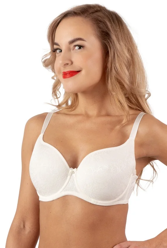 Dámská podprsenka 3D SPACER z nové kolekce Triumph od značky Fantasy. Podprsenka má jemně vyztužené košíčky a vyšší střed. Uvnitř košíčků na okraji je všitá jemná látka na podporu poprsí. Díky použitému 3D spacer materiálu (trychtýřkovitému zpracování materiálu) je tato podprsenka lehká, vzdušná a výborně odvádí pot od těla a přitom se budete cítit absolutně pohodlně a svěže. Obvod podprsenky je zpevněn silikonovou kosticí. Košíčky mají kostice a mezi nimi je stříbrná aplikace se štrasovým kamínkem s malou mašličkou. Vyšší střed i obvod dokonale podrží i větší poprsí. Pevně všitá ramínka jsou délkově nastavitelná. Zadní zapínání je na dva háčky a dvě pozice. Materiálové složení: 65% polyamid, 20% elastan, 15% bavlna