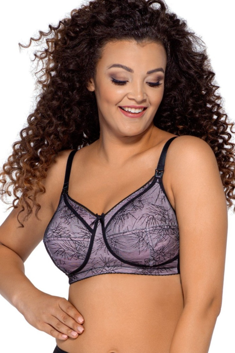 Měkká dámská podprsenka bez kostic. Podprsenka je vyrobená z měkké růžové bavlny obšité lehkým černým materiálem s abstraktním vzorem. Model dokonale nadnáší poprsí. Rozšířený obvod udržuje poprsí na správném a žádoucím místě. Pohodlné klipsy usnadňují rozepínání a zapínání košíčků. Klipsy jsou ozdobené obrázkem v podobě dračího nemluvněte. Materiálové složení: 88% polyamid, 8% bavlna, 4% elastan