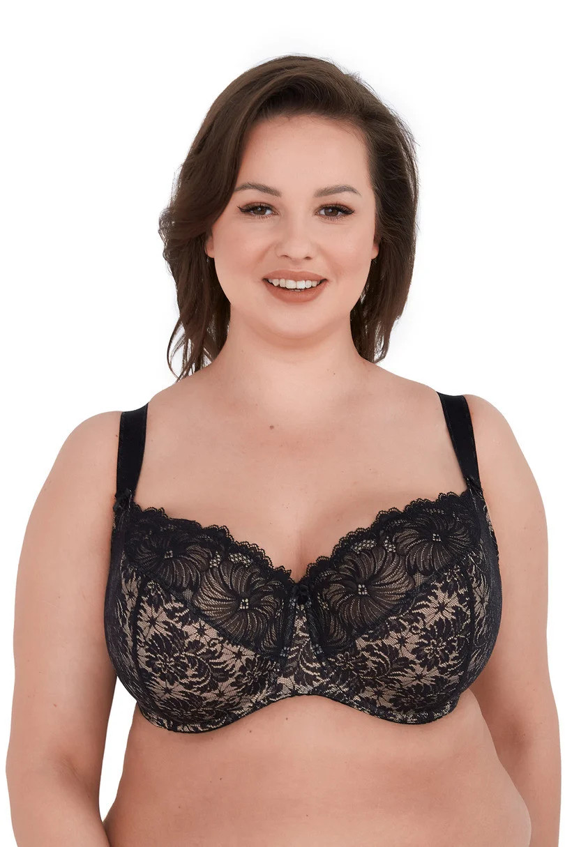 Měkká podprsenka Chantal Maxi 534 Black od společnosti GAIA je elegantní a pohodlná nabídka pro ženy s plnějším poprsím, které hledají oporu a styl v jednom. Konstrukce S1MX byla navržena speciálně pro větší velikosti - poskytuje dokonalé shromáždění poprsí, stabilitu a výjimečné pohodlí po celý den. Celý košíček je vyroben z nápadné černé krajky s květinovým vzorem, která prádlu dodává výjimečný půvab a smyslnost. Spodní část košíčků je podšitá elastickým úpletem a vnitřní strana je zakončena jemnou bavlnou, která je šetrná k citlivé pokožce. Boční velrybí kostice zabraňují sjíždění materiálu a zvyšují komfort nošení. Široká, nastavitelná ramínka dokonale podpírají poprsí, aniž by tlačila. Silně vyztužený střih s polootevřeným výstřihem krásně tvaruje siluetu a zabraňuje vyklouznutí prsou. Ideální volba pro každodenní nošení i zvláštní příležitosti - elegance v černé barvě. Složení: 48 % polyamid, 40 % polyester, 12 % elastan