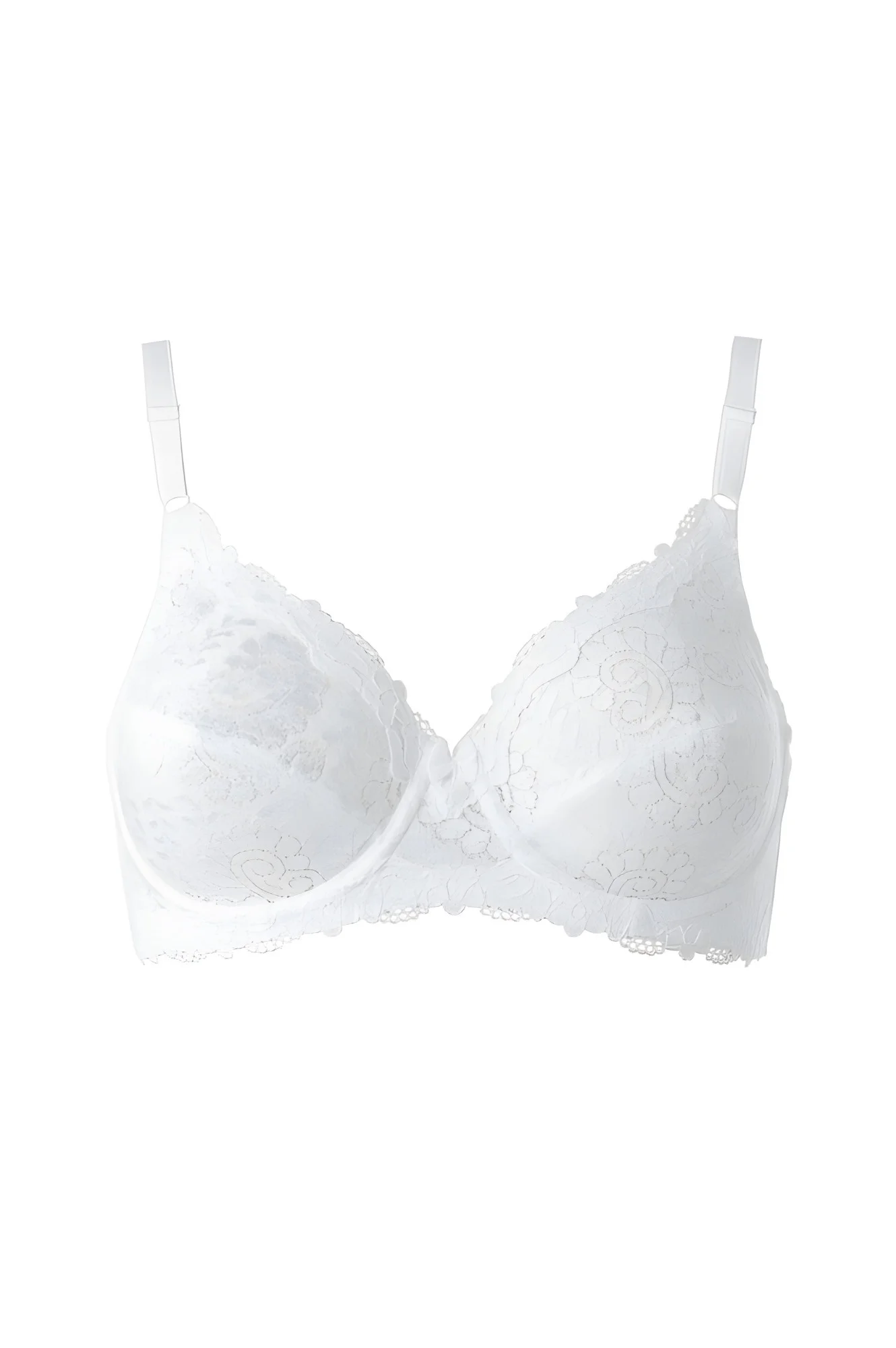 Dámská nevyztužená  podprsenka Compliment W - Triumph. Formující podprsenka s kosticemi, dolní část podprsenky i košíčků dodatečně zpevněná. Košíčky vyrobené z krajky, napůl vyztužené další vrstvou tylu Optimálně tvaruje a podporuje poprsí Plně nastavitelné ramínka Model je zvláště vhodný pro ženy s většími prsy Materiálové složení: 96% Polyamid, 4% Elastan Kód produktu: 10166802