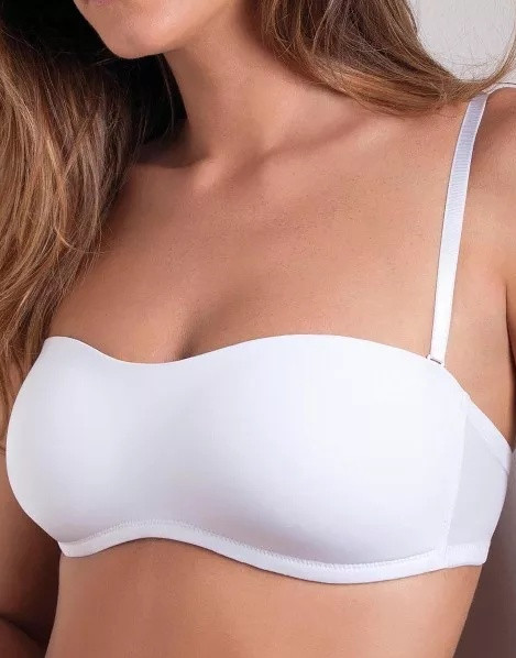 Dámská jemně vyztužená bezkosticová podprsenka značky Cotonella. Korzetová podprsenka je zcela hladká, má širší střed a boční zpevňující pružné kostice. Ramínka jsou oddělávací a lehce délkově nastavitelná. Po obvodu na vnitřní straně jsou aplikovány silikonové proužky pro dokonalé držení na těle. Zadní zapínání je na dva háčky a tři pozice. Materiálové složení: 89% polyamid, 11% elastan.