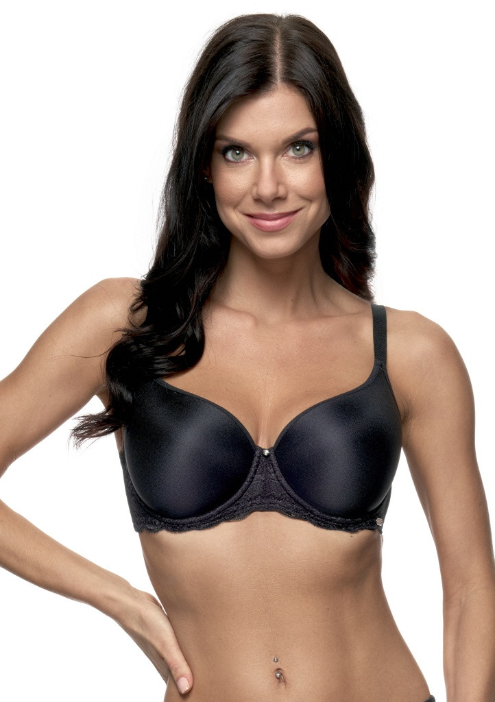 Dámská podprsenka značky Fantasy. Tato podprsenka je lehce vyztužená, košíčky jsou hladké. Pevně všitá ramínka jsou lehce délkově nastavitelná. Kolem spodní části košíčků je našitá krajka a mezi košíčky je stříbrná aplikace se štrasovým kamínkem. Jemné košíčky zpevňuje uvnitř boční výztuž. Vyšší střed i obvod dokonale podrží i větší poprsí. Zadní zapínání je na dva háčky a tři pozice. Materiálové složení: 85% polyamid, 15% elastan.