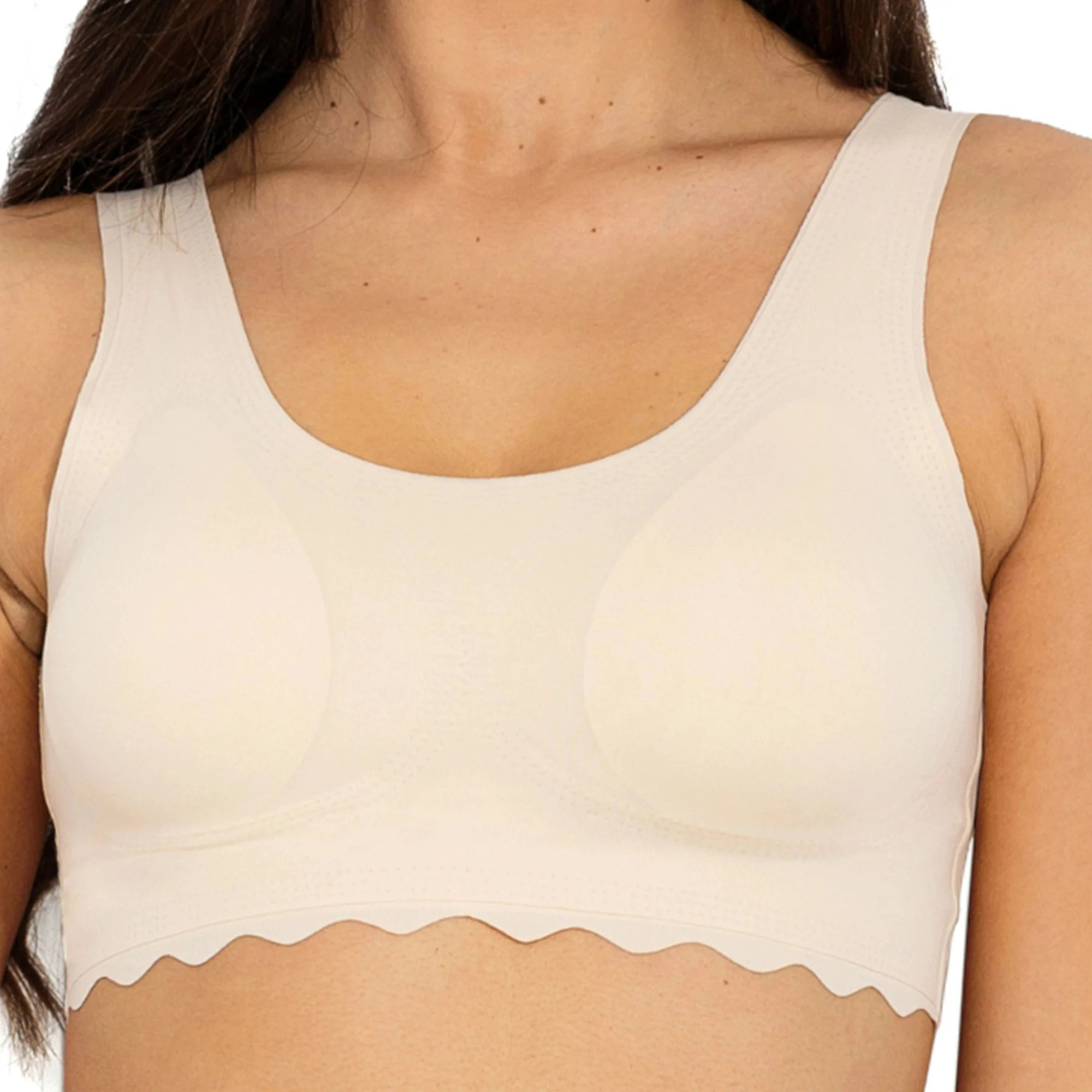 Dámská podprsenka Feel Good beige MITEX - béžová barva - typ braletka - z tenkého bezešvého úpletu - ušité technologií Laser Cut - měkké košíčky - vyjímatelné mírně vyztužené vsadky - vyztužený elastický obvod - bez kostic - široká ramínka - bez zapínání - neviditelné pod oblečením Materiálové složení: 75% polyamid + 25% elastan